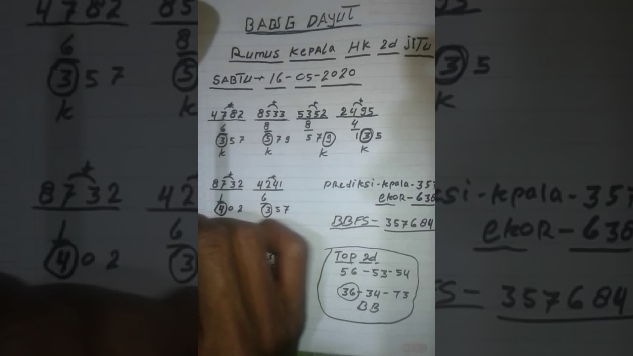 0 views, 0 likes, 0 loves, 1 comments, 0 shares, Facebook Watch Videos from BOTAK JITU: PREDIKSI BANG BOTAK#HK JITU MALAM INI 06 MEI 2023 | ANGKA JITU. Rumus mematikan kepala 2D ini adalah untuk mencari angka apa yang pasti akan muncul pada posisi AS kepala berdasarkan pengeluaran sebelumnya. Contoh: Keluaran hari sebelumnya 5121 = 51 (Ambil AS kepalanya) Keluaran kemarin 9612 = 96 (Ambil AS kepalanya) Lalu tinggal di jumlahkan 5 + 9 = 14 = 1 + 4 = 5 1 + 6 = 7